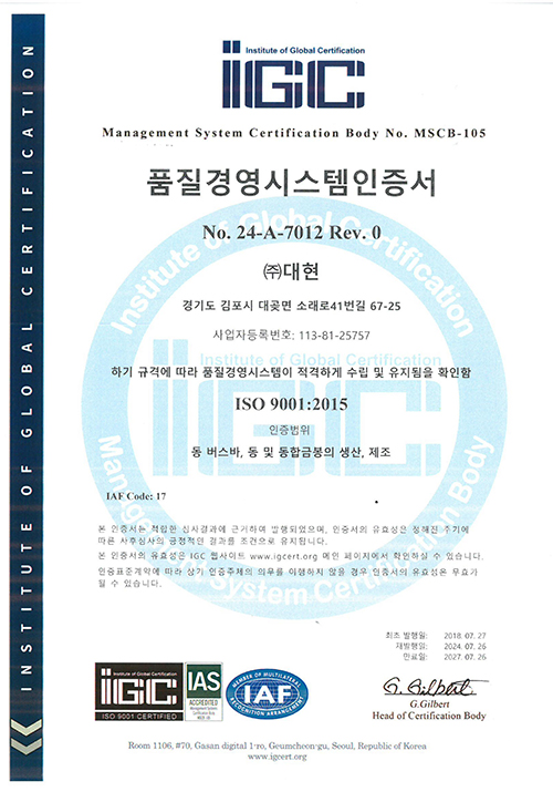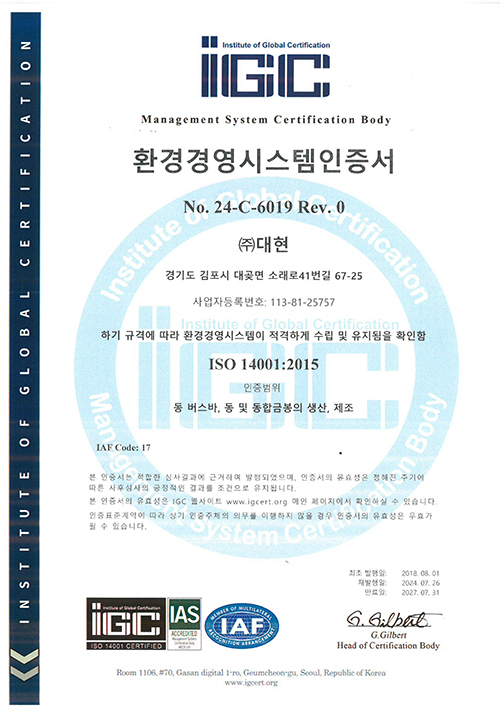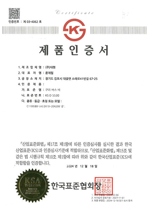 Japanese Industrial Standards Marking Certificate (Copper Busbar)