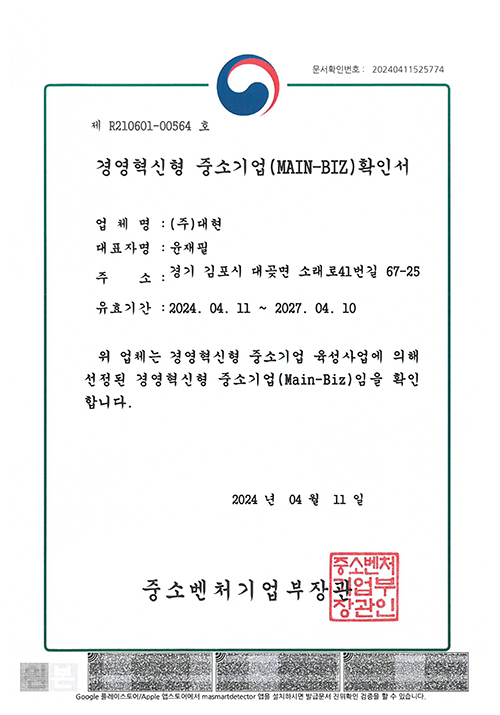 Certificate of Innovative Management Enterprise (Main-Biz)